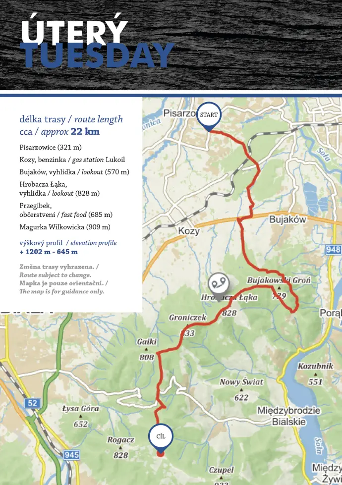 At selected locations, there are so-called meeting points where our drivers, Jarda and Ivana, can transport participants to the accommodation or to another meeting point if necessary, in case they want to continue later in the stage.